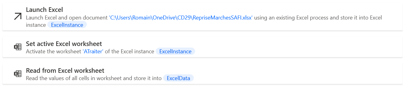 Penser à bien mettre à jour la colonne de fin lorsque de nouvelles colonnes sont ajoutées à l'étape de lecture des données du fichier Excel.
