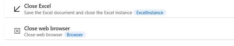 Reprise des marchés SAFI - F_Finalisation¶ Fermeture des applications¶ Fermeture de l'instance Excel Fermeture du navigateur